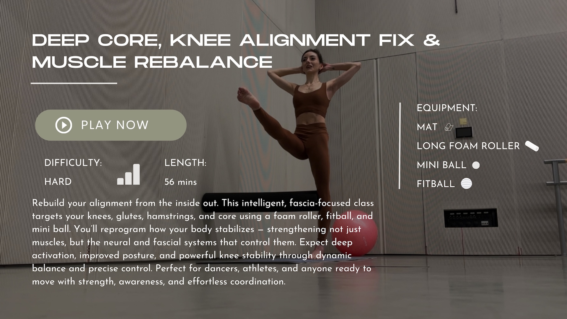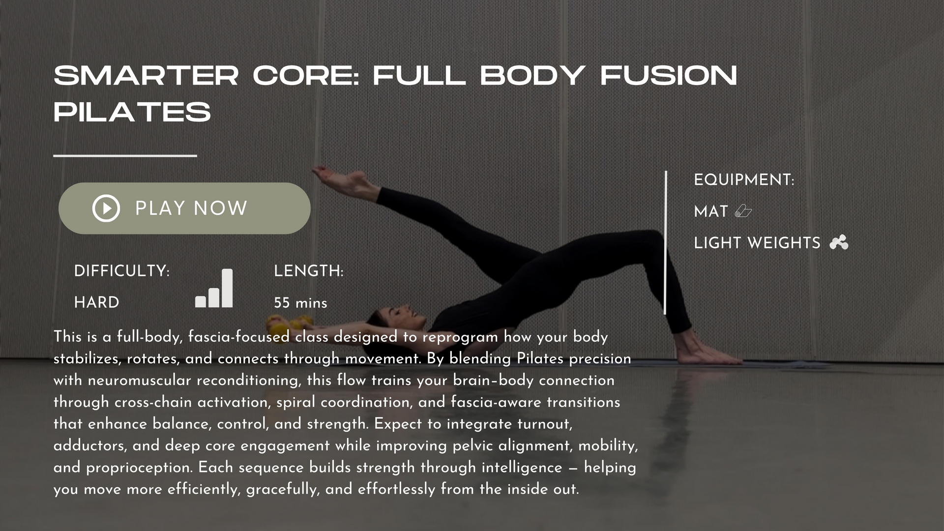 Browse by focus, length, difficulty, and props used – find a workout for your mood!