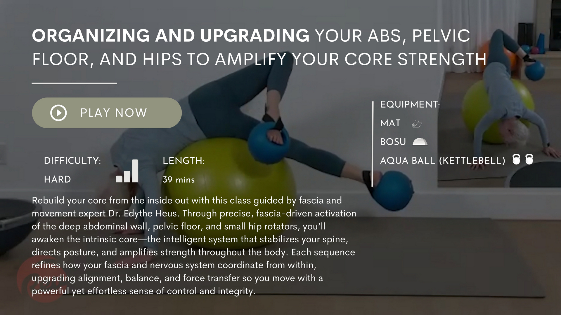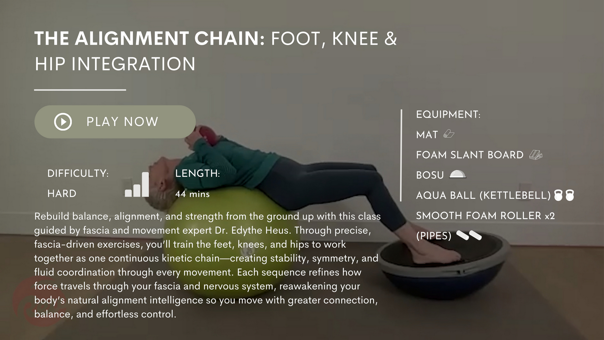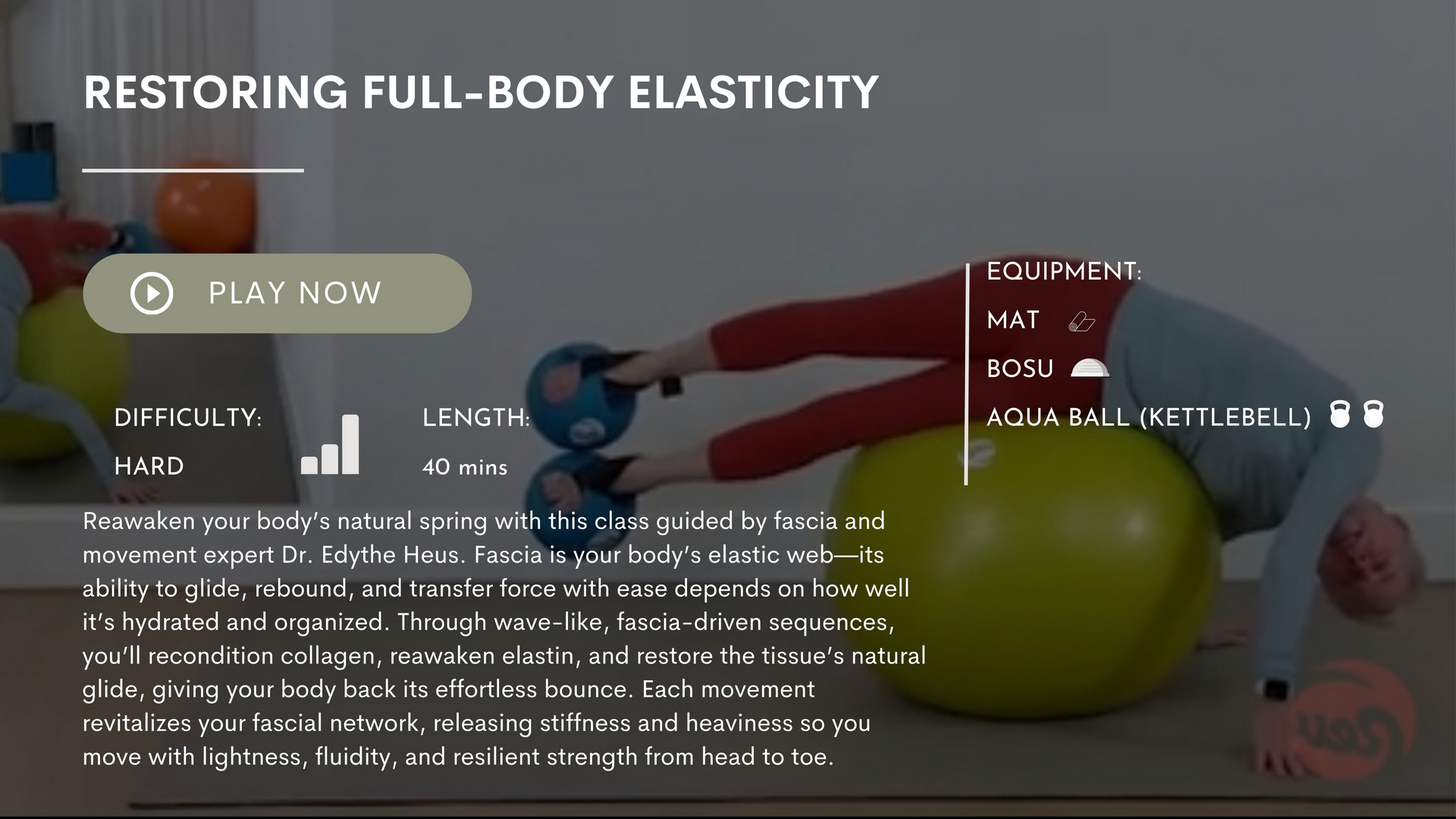 Fascia elasticity, rotational slings, full-body mobility, spirals, extension lines, deep range, and structural freedom.